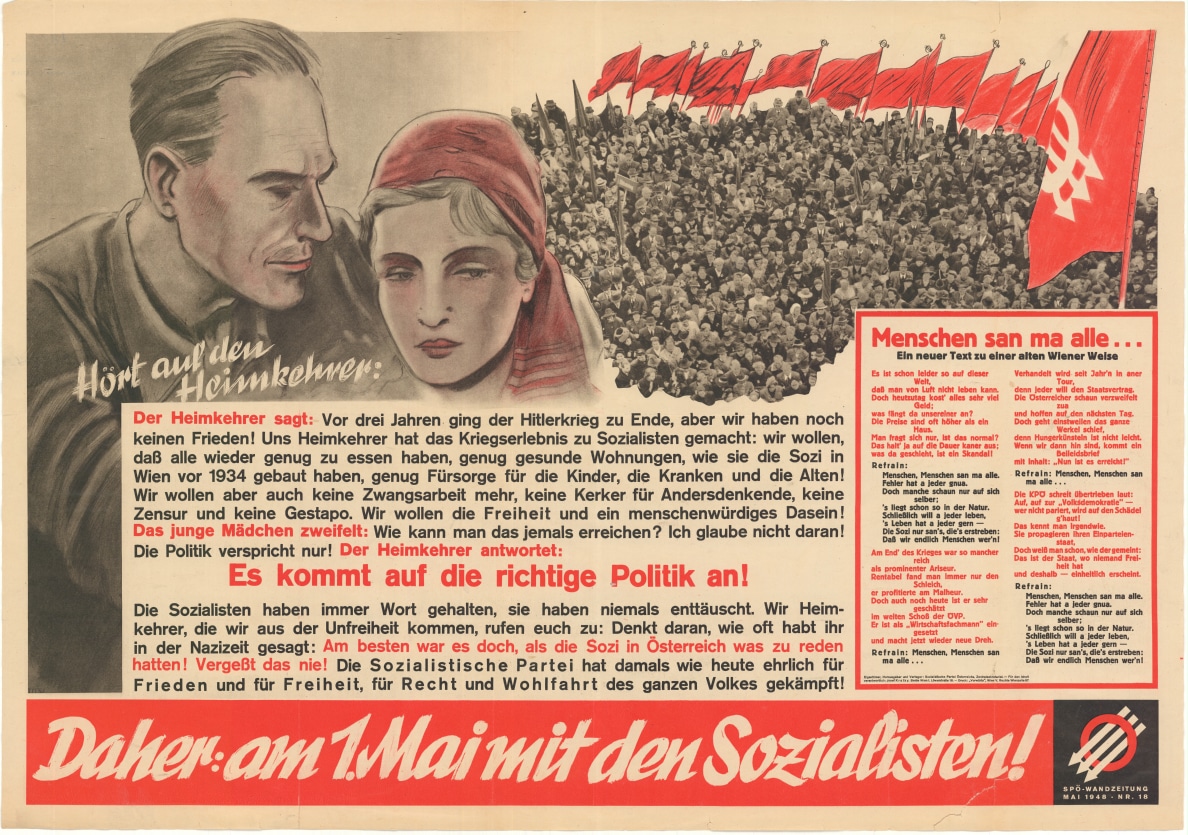 "So feierte das rote Wien den 1. Mai 1947 ... Wir fordern einen gerechten Staatsvertrag! Gebt unsere Kriegsgefangenen frei!"