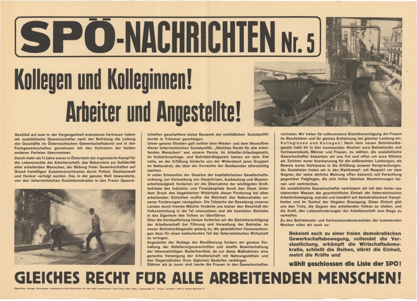 "Kollegen und Kolleginnen! Arbeiter und Angestellte" ..."SPÖ-Nachrichten Nr. 5