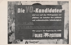 Sammlung Kunisch: Nationalratswahl 1953, Plakat der Wahlgemeinschaft Österreichische Volksopposition "Die VO-Kandidaten sind nur dem VO-Programm verpflichtet; sie behalten ihre politische und weltanschauliche Selbständigkeit. We...