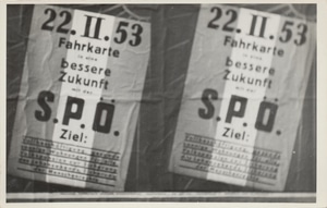 Sammlung Kunisch, Nationalratswahl 1953, Plakat der SPÖ "22.II.53 Fahrkarte in eine bessere Zukunft mit der S.P.Ö. Ziel: (...)"
