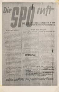 Sammlung Kunisch: Nationalratswahl 1949, Plakat der SPÖ "Die SPÖ ruft - An das österreichische Volk (...) Wer wir sind (...) Was wir wollen (...) Das wollen die Sozialisten! (...) wähle am 9.Okt. die Sozialistische Partei!" [...