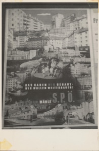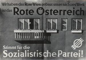 Sammlung Kunisch: Nationalratswahl 1949, Plakat der SPÖ "Wir haben das Rote Wien gebaut, unser nächstes Werk ist das Rote Österreich - Stimmt für die Sozialistische Partei!" [Kreis mit drei Pfeilen] - bei Kunisch 1953 eingeord...
