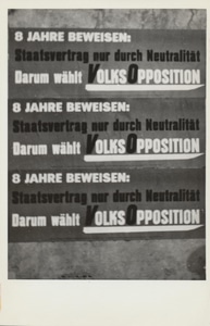 Sammlung Kunisch: Nationalratswahl 1953, drei Plakate der Wahlgemeinschaft Österreichische Volksopposition "8 Jahre beweisen: Staatsvertrag nur durch Neutralität! Darum wählt Volksopposition [VO]"