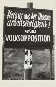 Sammlung Kunisch: Nationalratswahl 1953, ein Schild und zwei Plakate der Wahlgemeinschaft Österreichische Volksopposition "Heraus aus der Massenarbeitslosigkeit! Wählt Volksopposition [VO]" / "Volksopposition" [zwei "Rentenklau"...