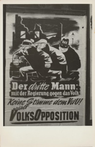 Sammlung Kunisch: Nationalratswahl 1953, Plakat der Wahlgemeinschaft Österreichische Volksopposition "Der dritte Mann: mit der Regierung gegen das Volk - Keine Stimme dem VdU! Wählt Volksopposition!" [Figl, Schärf und ein Mann ...