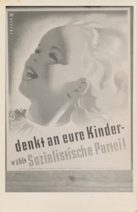 Sammlung Kunisch: Nationalratswahl 1953, Plakat der SPÖ "denkt an eure Kinder - wählt Sozialistische Partei" [Gesicht eines kleinen Mädchens]
