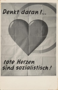 Sammlung Kunisch: Nationalratswahl 1949, Plakat der SPÖ "Denkt daran!... rote Herzen sind sozialistisch!" [bei Kunisch 1953 eingeordnet]