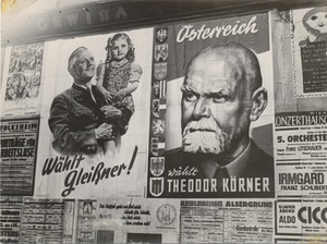 Sammlung Kunisch: Bundespräsidentschaftswahl 1951, Plakatwand der Gewista, u.a. "Wählt Gleißner", "Österreich wählt Theodor Körner"