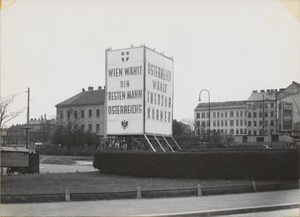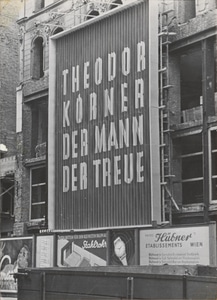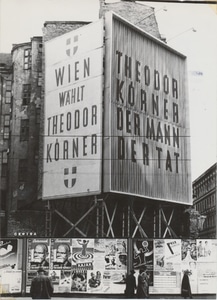 Sammlung Kunisch: Bundespräsidentschaftswahl 1951, Plakatgerüst der SPÖ "Wien wählt Theodor Körner" - Volksoper
