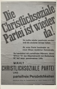 Sammlung Kunisch: Nationalratswahl 1953, Plakat der Christlichsozialen Partei und Parteifreie Persönlichkeiten "Die Christlichsoziale Partei ist wieder da! Sie mußte wieder gegründet werden, weil die anderen versagt haben. Als ...