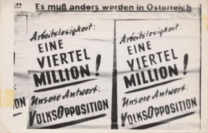 Sammlung Kunisch: Nationalratswahl 1953, Plakate der Wahlgemeinschaft Österreichische Volksopposition "Es muß anders werden in Österreich" / "Arbeitslosigkeit: eine Viertel Million! Unsere Antwort: Volksopposition [VO]"