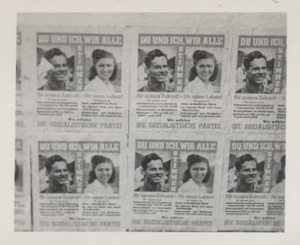 Sammlung Kunisch: Nationalratswahl 1949, Plakat der SPÖ "DU UND ICH, WIR ALLE STIMMEN für unsere Zukunft - für unser Leben! [...] Wir wählen die Sozialistische Partei" [junger Mann - Walter Wollner - und junge Frau]