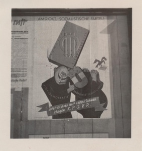 Sammlung Kunisch: Nationalratswahl 1949, beschmiertes Plakat der KPÖ und Linkssozialisten "Wehr dich gegen die Abwertung", siehe 05/133
