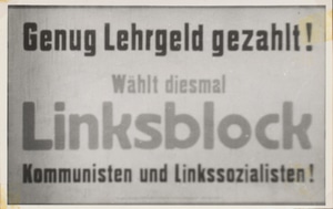Sammlung Kunisch: Nationalratswahl 1949, Plakat der KPÖ und Linkssozialisten "Genug Lehrgeld gezahlt! Wählt diesmal Linksblock - Kommunisten und Linkssozialisten!"