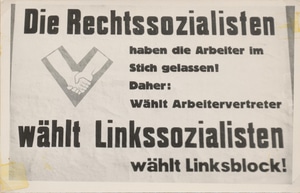 Sammlung Kunisch: Nationalratswahl 1949, Plakat der KPÖ und Linkssozialisten "Die Rechtssozialisten haben die Arbeiter im Stich gelassen! Daher: Wählt Arbeitervertreter - wählt Linkssozialisten - wählt Linksblock!"
