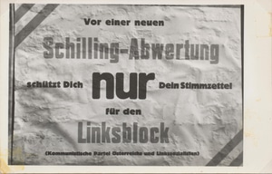Sammlung Kunisch: Nationalratswahl 1949, Plakat der KPÖ und Linkssozialisten "Vor einer neuen Schilling-Abwertung schützt Dich nur Dein Stimmzettel für den Linksblock"