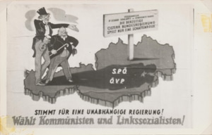 Sammlung Kunisch: Nationalratswahl 1949, Plakat der KPÖ und Linkssozialisten "Stimmt für eine unabhängige Regierung! Wählt Kommunisten und Linkssozialisten!" ["Vizekanzler Dr. Schärf erklärte [...] Die derzeitige österr. Bu...