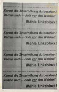 Sammlung Kunisch: Nationalratswahl 1949, Plakat der KPÖ und Linkssozialisten "'Kannst die Zinserhöhung du bezahlen? Rechne nach - doch vor den Wahlen!' Wähle Linksblock!"