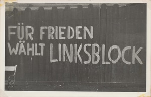 Sammlung Kunisch: Nationalratswahl 1949, Graffiti auf Bretterwand der KPÖ und Linkssozialisten "Für Frieden für Linksblock"