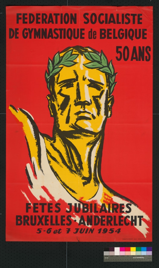 Federation Socialiste De Gymnastique de Belgique 50 AnsJubelfeesten Brussel Anderlecht5 - 6 en 7 Juni 1954Kopf eines Athleten mit Lorbeerkranz2 Exemplare