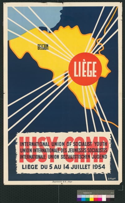 IUSY-CAMP International Union of Socialist Youth Liège du 5 au 14 Juillet 1954Belgien - Liège - von dort gehen Strahlen weg in alle Richtungen