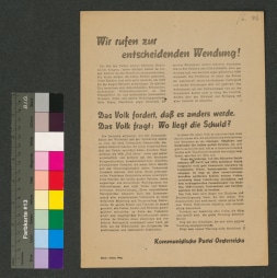 Wir rufen zur entscheidenden Wendung!Das Volk fordert, daß es anders werde. Das Volk fragt: Wo liegt die Schuld?Kommunisitische Partei Österreichss