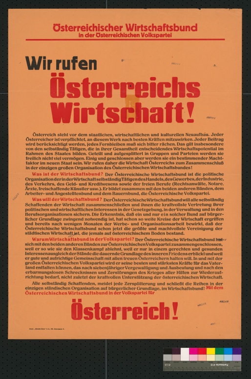 Österreicher!Österreich ist wieder frei!Was will die Österreichische Volkspartei?Für ein neues, freies und glückliches Österreich!ÖVP, Landesleitung Niederösterreich