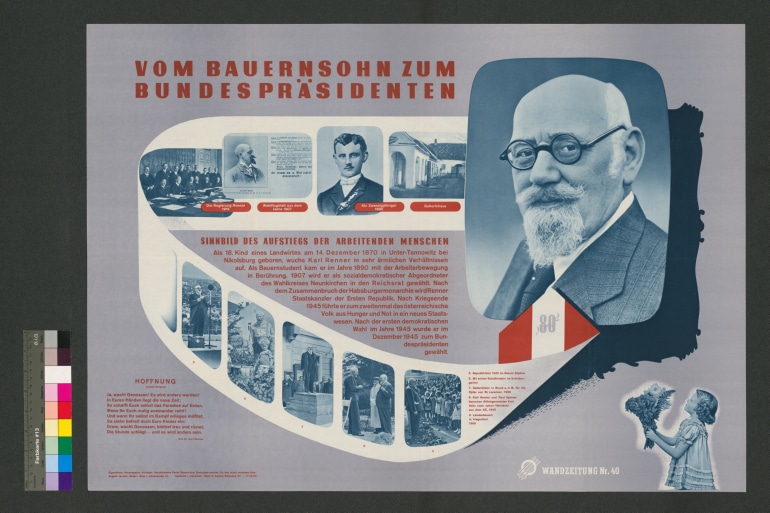 Karl Renner "Vom Bauernsohn zum Bundespräsidenten"Sinnbild des Aufstiegs der arbeitenden Menschen.SPÖ Wandzeitung Nr. 40