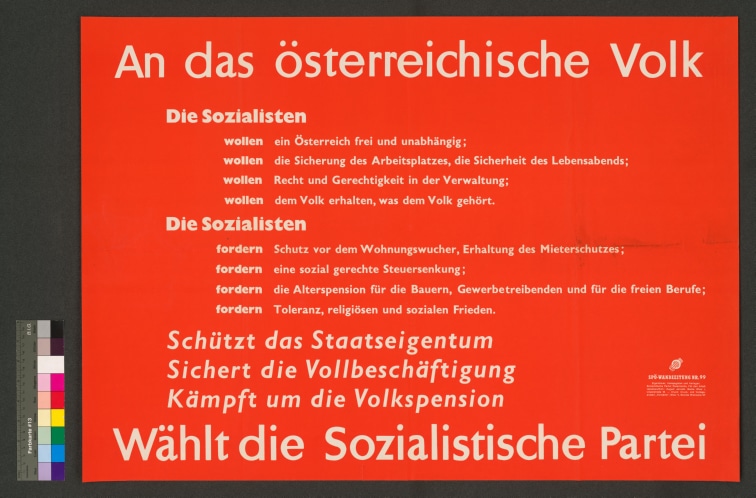 Wandzeitung d. SPÖ Nr. 99: "An das österreichische Volk" Wahlplakat d. SPÖ f. d. Nationalratswahl 1953(2 Expl.)