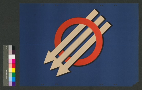 Bild: SPÖ-Logo. Drei Pfeile mit rotem Kreis. Blauer Grund.