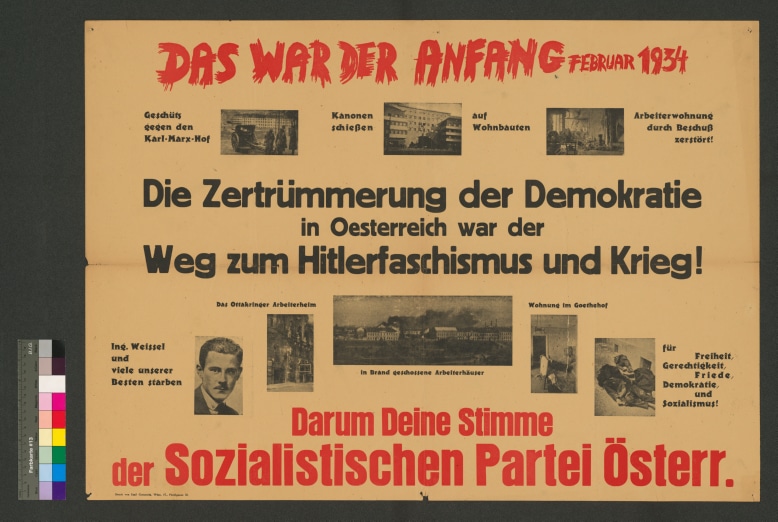 "Oesterreicher! In den Jahren der Demokratie waren wir Kämpfer für die Rechte des VolkesAls Sozialdemokraten haben wir im Roten Wien ein Aufbauwerk vollbracht, wie es die kapitalistische Welt noch nie gesehen hatte. 1934 hab...